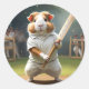 Pegatina Redonda Cricketer De Cerdo De Guinea: Vestido En Blanco