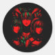 Three cybernetic young women with glowing green eyes emerge from shadow in a striking red-and-black futuristic portrait of unity and rebellion.