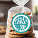 Pegatina Redonda Cristo Personalizado Ha Nacido Navidad Azul