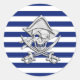 Pegatina Redonda Cromado como pirata en franjas náuticas