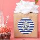 Un cromo plateado como un diseño pirata en una decoración de rayas azul marino. Un regalo náutico moderno. Utilice el vínculo "Preguntar a este diseñador" para contactarnos con sus solicitudes de diseño especiales o para obtener ayuda con alguna de sus necesidades de personalización.