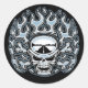 Calavera cromada y huesos cruzados con imágenes cromadas de las llamas, en camisetas, capuchas, tarjetas, regalos.