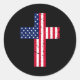 Pegatina Redonda Cross Usa Flag Christian Religious Us America Fait