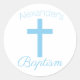 Pegatina Redonda Cruz azul bebé con bautismo de nombre personalizad