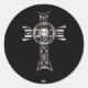 Pegatina Redonda Cruz Celta y Calavera (Plata)