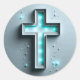 Pegatina Redonda Cruz Cristiana Azul Claro