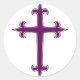 Pegatina Redonda Cruz cristiana púrpura
