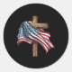 Pegatina Redonda Cruz De Bandera Para Cristianos Patrióticos Estado