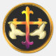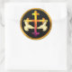 Pegatina Redonda Cruz de hierro con palomas sobre fondo negro