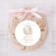 El Baptism Classic Round Pegatina presenta una hermosa cruz color de agua rosa y dorada rodeada de vegetación y flores.