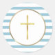 Pegatina Redonda Cruz dorada con franja azul