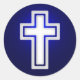 Pegatina cristiana única con cruz blanca sobre fondo azul marino.