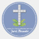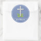 Pegatina Redonda Cruz religiosa en gris azul