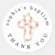 Pegatina Redonda Cruz Rosa Florals Nombre Gracias Bautismo Chica