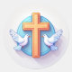 Pegatina Redonda Cruz y palomas sagradas