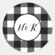 Pegatina Redonda Cuadrados de cuadros negros y blancos de Plaid Búf