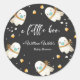 Bebé Fantasma Halloween Cae Pegatina Redondo Clásico Baby Shower. Cute tema de Halloween ducha bebé Favor Fiesta Pegatinas redondos clásicos con un ilustracion de un bebé fantasma con un pacificador azul, un pañuelo de naranja, caramelos de caña y estrellas. La función de texto es "A little boo", perfecta para el niño y el bebé chica que se espera en otoño.