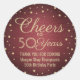 Añade un toque de acabado personalizado a la fiesta de cumpleaños gracias notas o favores con estos pegatinas/sellos para sobres de color burdeos y oro redondo. Esta plantilla está configurada para un cumpleaños número 50, pero es sencilla de personalizar a otro año o evento, como un aniversario. El diseño presenta puntos de confeti con aspecto de Relieve metalizado en un fondo de acero inoxidable color rojo marrón, caligrafía de escritura elegante "Saludos a 50 años" y un mensaje moderno editable de tipografía minimalista en la parte inferior. Tenga en cuenta que el oro es color impreso, no Relieve metalizado metálico.