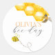 Pegatina Redonda Cualquier edad, tema de la abeja cumpleaños