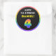 Pegatina Redonda Cuarto cumpleaños: arcoiris colorido # 4, nombre p