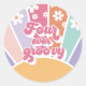 Pegatina Redonda Cuatro margaritas de arcoiris retro de siempre