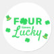 Pegatina Redonda Cuatro veces afortunado cuarto cumpleaños