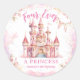 Pegatina Redonda Cuatro veces un Princesa Chica de Castillo Rosa
