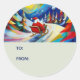 Pegatina Redonda Cubism Santa Christmas Holiday To From