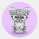 Pegatina Redonda Cubo de leopardo de la nieve con lentes morados
