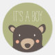 Diseño de bebés con temática de Woodland, por Shelby Allison, con un ilustracion de un retrato de un oso dulce con las palabras "oso bebé".