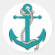 Pegatina Redonda Cuchara de anclaje de silueta azul acuático náutic