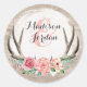 Pegatina Redonda Cuerno Floral Rústico Madera Boda Personalizado
