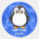 Pegatina Redonda Cuidada acuarela pingüino azul