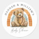 Pegatina Redonda Cuidada Acuarela Teddy Bear Y Arcoiris Baby Shower