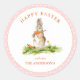 Personalizado Feliz Pascua pintado a mano acuarela vintage estilo pegatinas de conejito de Pascua con borde de puntos de polka rosa. .Elementos coincidentes disponibles.
