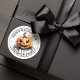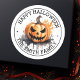 Feliz pegatina de Halloween con una espeluznante acuarela Jack-o-Lantern. Texto en negro "Happy Halloween" con tu nombre personalizado. Utilizar como sellos para sobres, pegatinas para regalos y favores, envasado de productos, artesanías y recortes, etc.