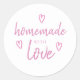 Pegatina Redonda Cuidada Casera Con Amor Fuchsia Blanco Rosa
