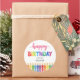 Pegatina Redonda Cuidada colorida Feliz Cumpleaños acuarela