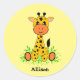 Pegatina Redonda Cuidada jirafa de bebé graciosa para los niños