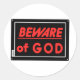 Pegatina Redonda Cuidado con el Rótulo de Dios Parody Yard
