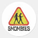 Guay y diseño divertido con un cartel con dos personas caminando mirando en sus smartphones como zombies y la cita "Watch out Smombies".
