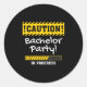 Pegatina Redonda ¡Cuidado! Fiesta de Soltero en Marcha Novio Novia