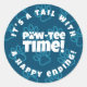 Celebra a ese miembro más nuevo (de cuatro patas) de la familia con este pegatina, que muestra el mensaje "¡Hora de paw! Es una cola con un final feliz" en un divertido y atractivo tipo de letra, con un patrón repetido de huellas brillantes en un fondo azul oscuro. ¡Genial para los fiestas de adopción de mascotas! Diseño © W.H. Sim, todos los derechos reservados. Ver más en zazzle.com/expressionsoccasions