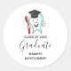 Pegatinas de graduación con un ilustracion de un gran diente blanco al estilo personalizado sonriendo alegremente sosteniendo un cepillo de dientes rojo y dando el pulgar hacia arriba. Con una gorra negra de graduación.