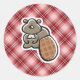 Pegatina Redonda Cuidadoso castor; Placa roja