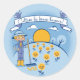 Un jardinero sonriente cultiva flores amarillas sonrientes. Dos pájaros azules llevan una pancarta que dice "¡Cultivez la bonne humeur!" (Cultiven el buen humor).