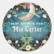 Pegatina Redonda Cumple en la Luna Niña Femenina Flores Rosadas Beb