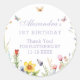 Pegatina Redonda Cumpleaños 1 de Wildflower Butterfly Girl Gracias