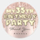 Pegatina Redonda Cumpleaños 35 de Nombre Fiesta Glitter Drips Rosa