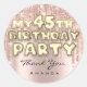 Pegatina Redonda Cumpleaños 45 de Nombre Fiesta Glitter Gotas Rosa